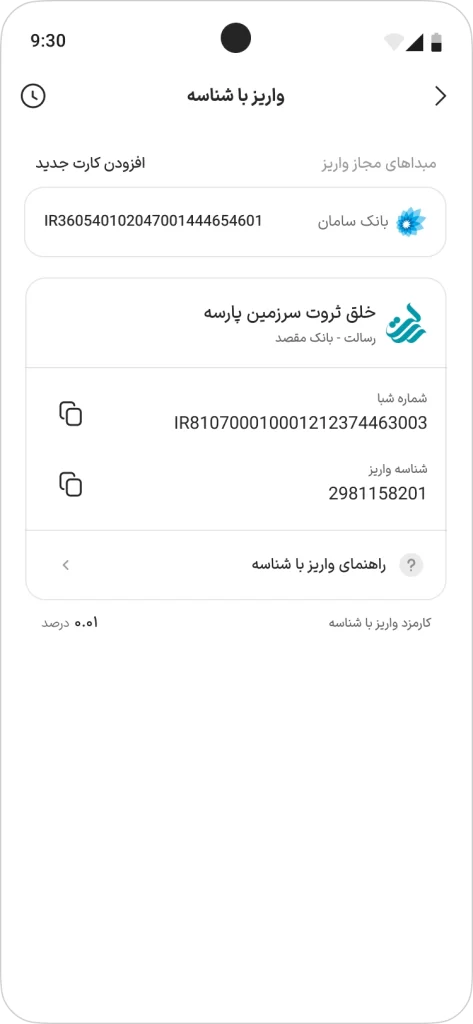 مرحله پنجم: دریافت شماره شبا و شناسه واریز